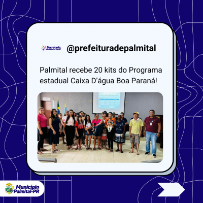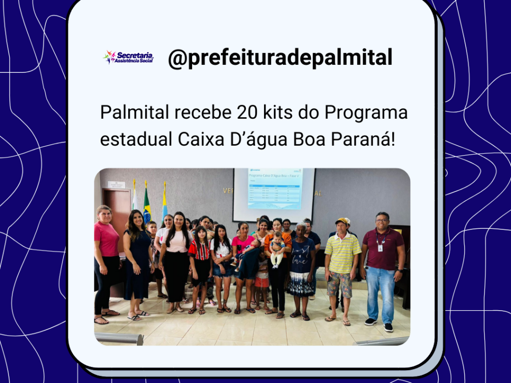 O município de Palmital foi contemplado com 20 unidades do programa Caixa d’Água Boa, uma iniciativa do Governo do Estado do Paraná, por meio da Secretaria do Desenvolvimento Social e Família (SEDEF) e da Companhia de Saneamento do Paraná (Sanepar). O programa tem como objetivo melhorar as condições habitacionais de famílias em situação de vulnerabilidade social, garantindo o acesso contínuo à água potável.